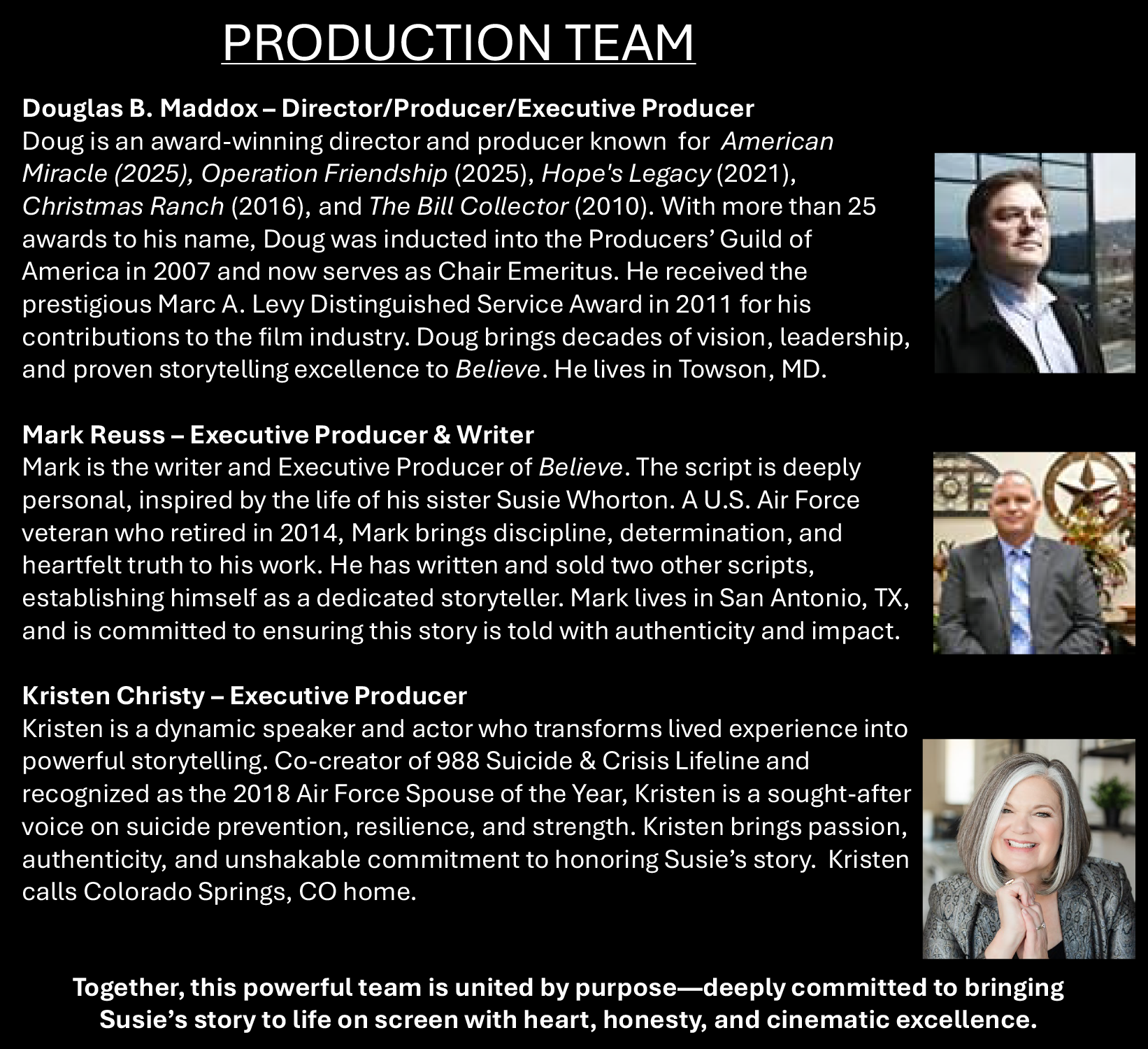 Set in central Texas, BELIEVE is based on a true story; Ann, a devoted mother and team photographer whose lens captured more than just football—it captured transformation.